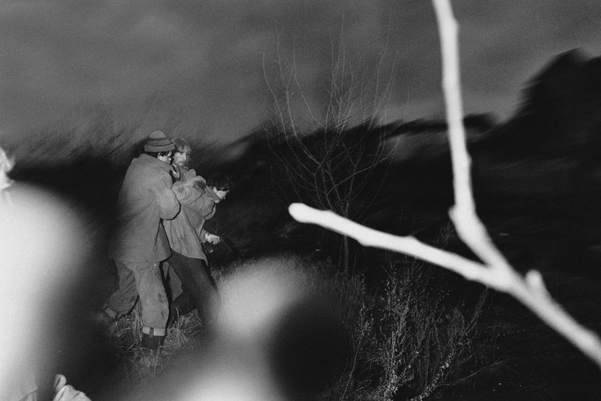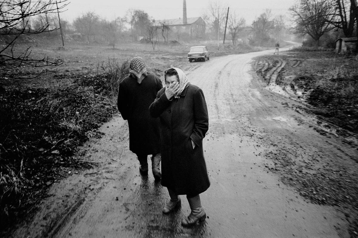 Ženy z Lomu v první den blokády rypadla, ulice Na Hrázi. Vyfoceno 1. prosince 1992 v Libkovicích.
