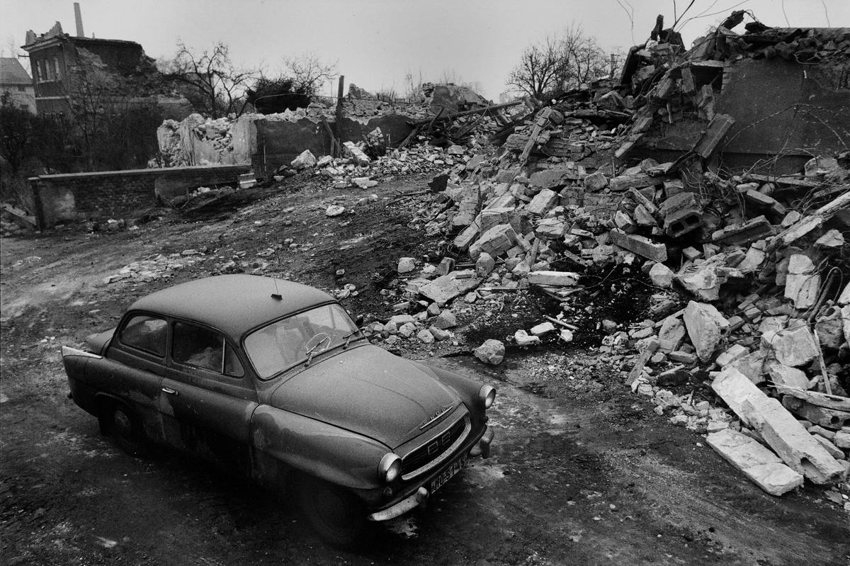 Na snímku zbytky domu na rohu ulic Reichrtova a Vinohrady, říjen 1992.