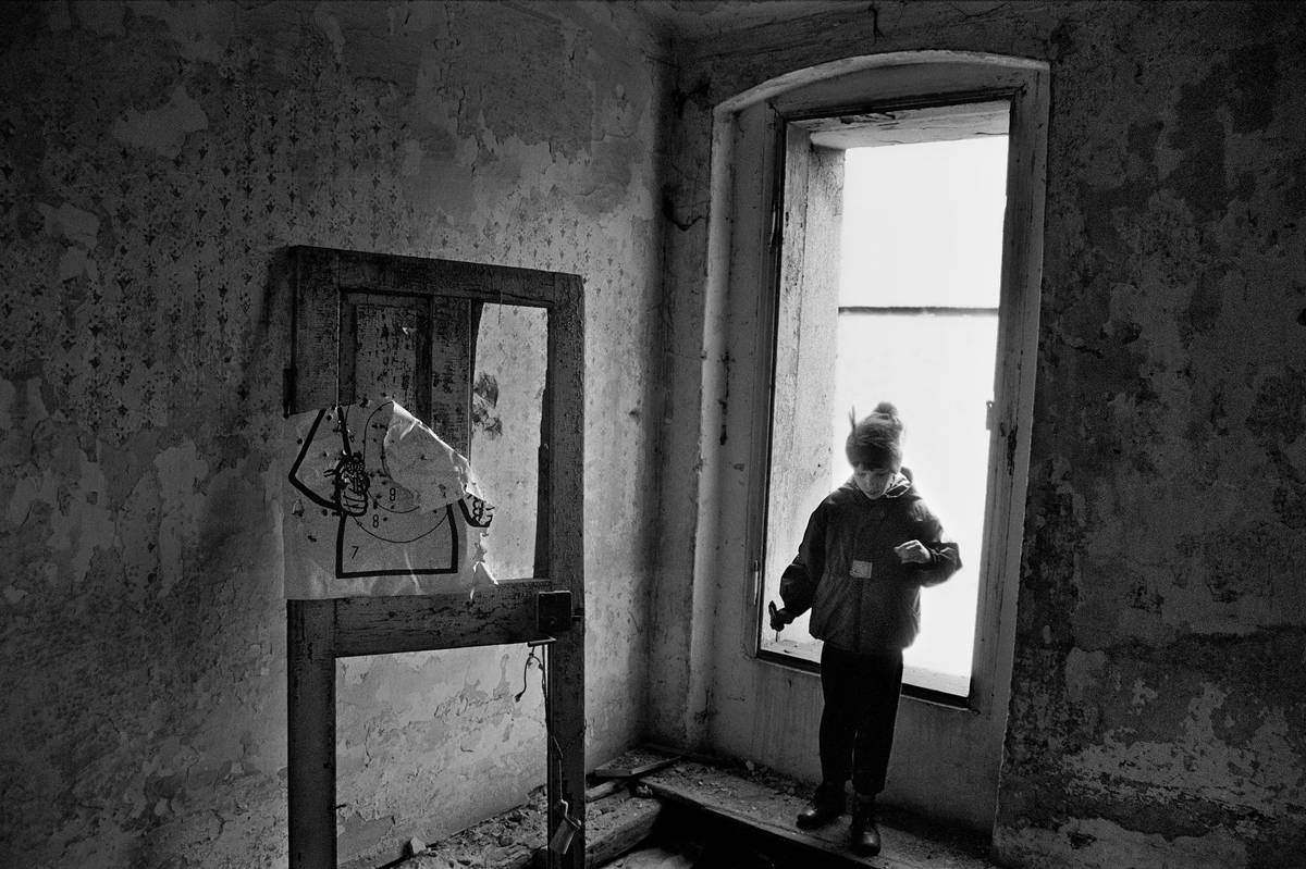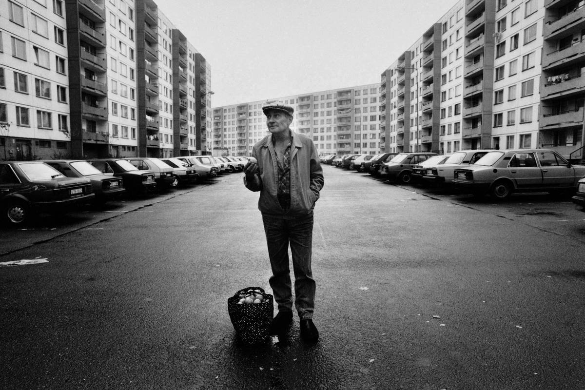 Karel Krejčí ve svém novém bydlišti na panelovém sídlišti Liščí vrch / Most, vyfoceno v listopadu 1993.