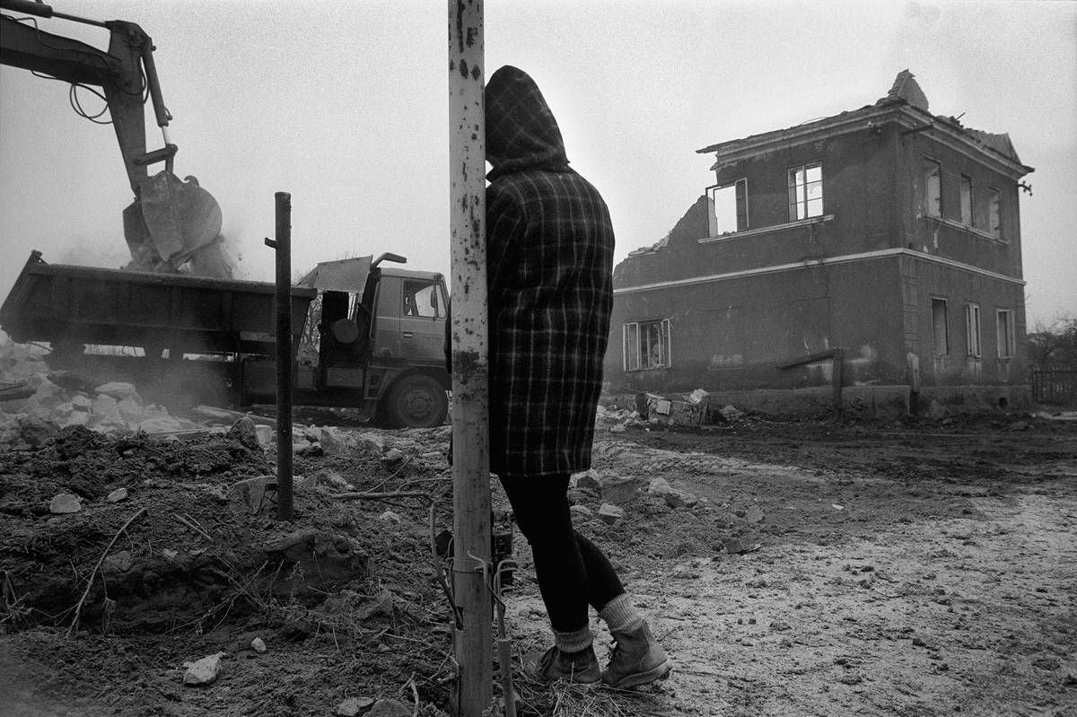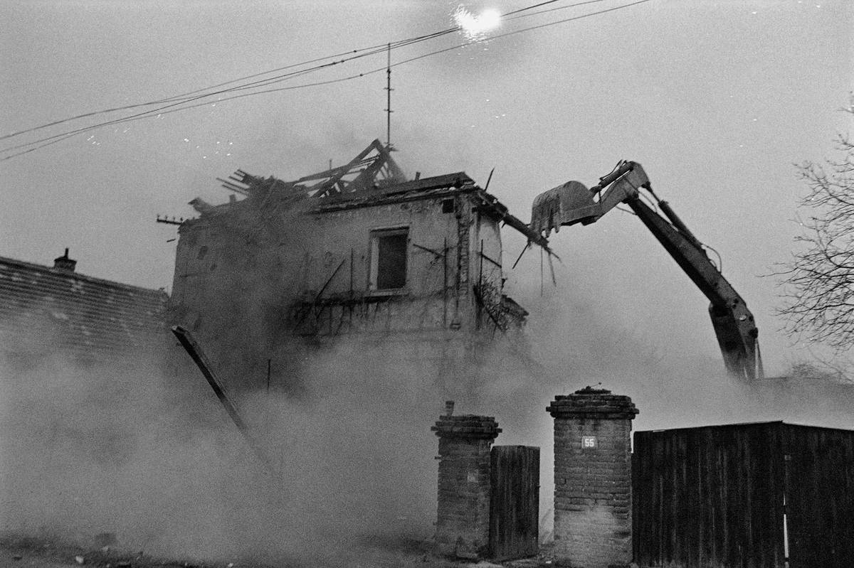 Demolice domu č. p. 55 v ulici Čsl. armády, vyfoceno v prosinci 1992.