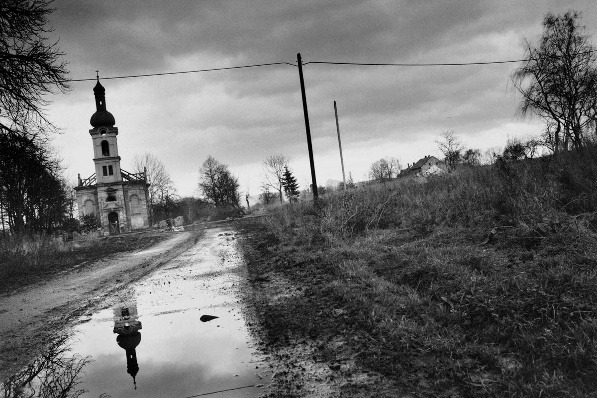 Kostel sv. Michaela v prosinci 1993. Kostel byl stržen až v roce 2002.