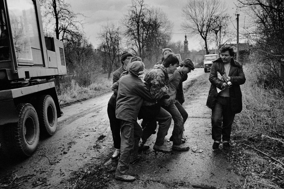 Karel Krejčí jde obráncům vesnice pro uhlí, únor 1993.