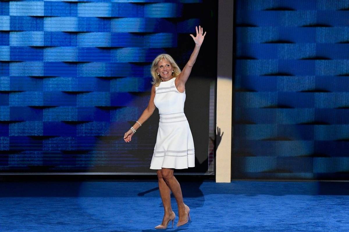 Jill Bidenová při projevu na celonárodním sjezdu Demokratické strany v roce 2020