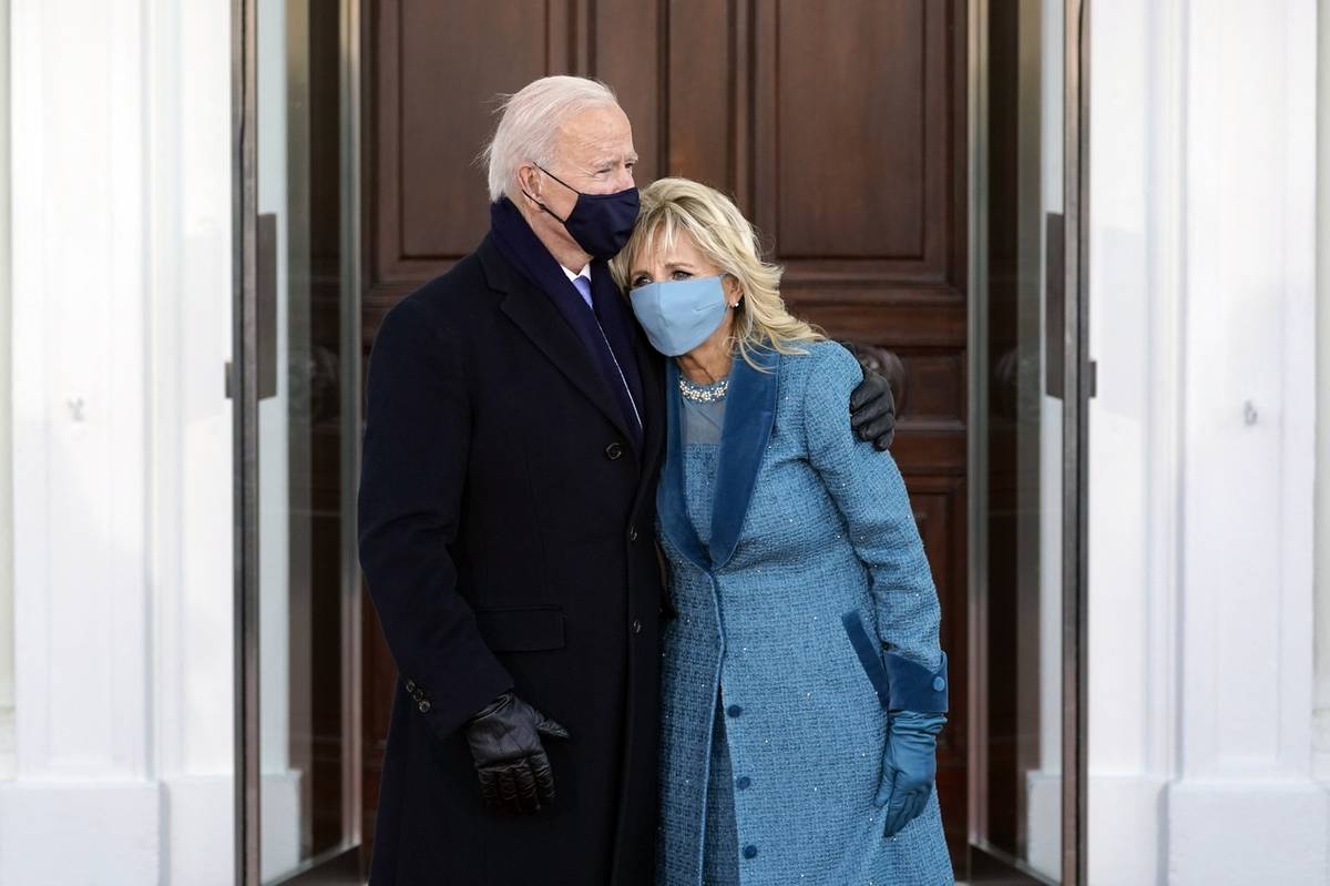Americký prezident Joe Biden a první dáma Jill Bidenová u dveří Bílého domu