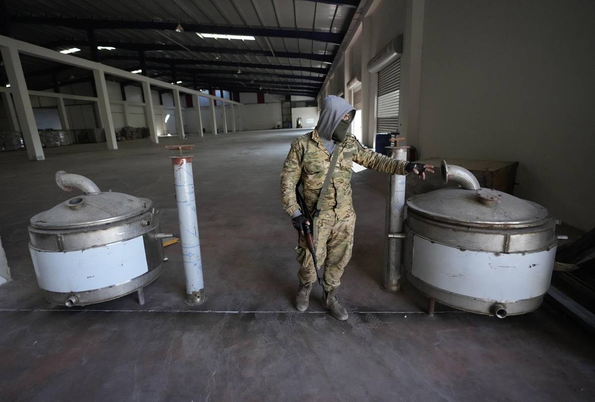 Povstalec ukazuje na zařízení na výrobu captagonu, který byl důležitým syrským vývozním artiklem a který stojí za epidemií zneužívání drog v bohatých státech Perského zálivu.