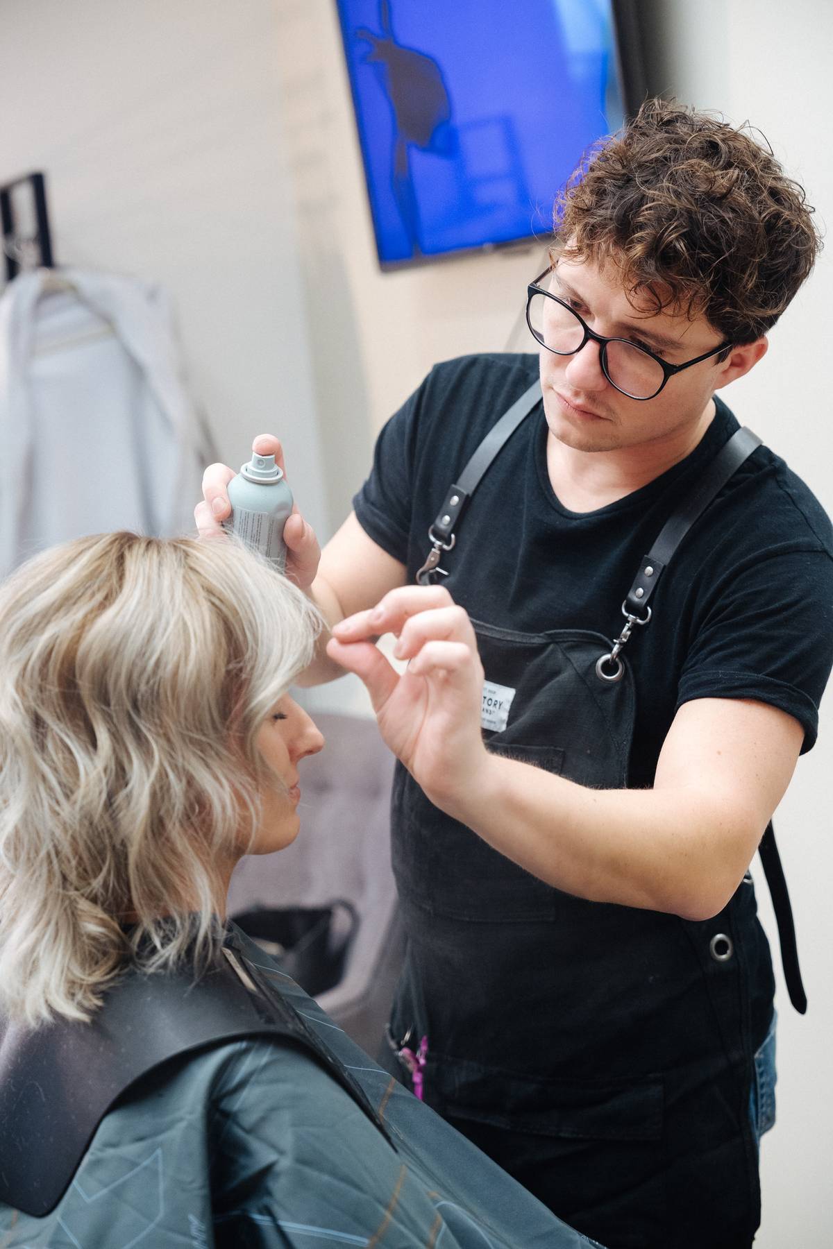 Kadeřník začal barvením, přičemž použil dva různé odstíny. Zatímco k hlavě nanesl popelavou, do délek použil platinovou, která utlumila nažloutlé odlesky