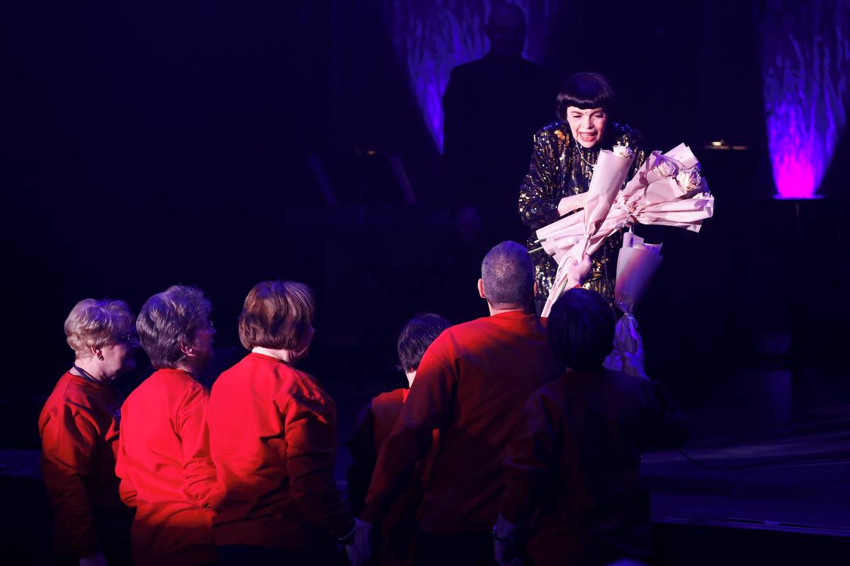 Dárky od obecenstva zpěvačka přebírá takřka po každé písni.