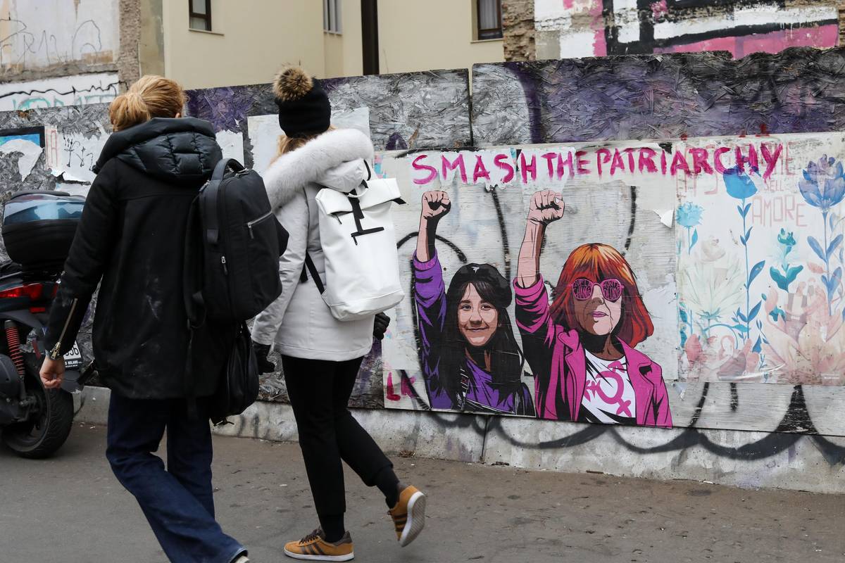 Stala se hrdinkou pouličního umění. (Streetart s nápisem „Svrhněte patriarchát“ s portréty Giulie Cecchettinové a Giséle Pelicotové. Viale Tunisia, v Miláně (Itálie), 25. listopadu.)