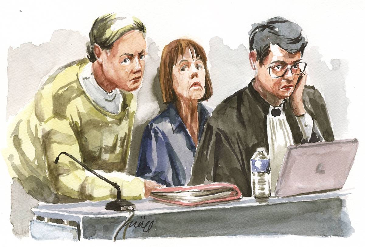 (Dcera Pelicotových Caroline Darianová, její matka Gisèle Pelicotová s právníkem Stephanem Babonneauem, 6. září).