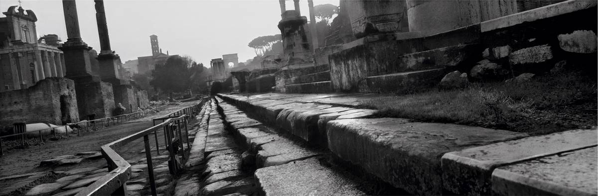 „Myslím si, že naše přítomnost se stane jednou minulostí a že dopadne stejně jako tyhle ruiny,“ říká Koudelka o fotografiích. (Foto: Itálie, Řím, 2000.)