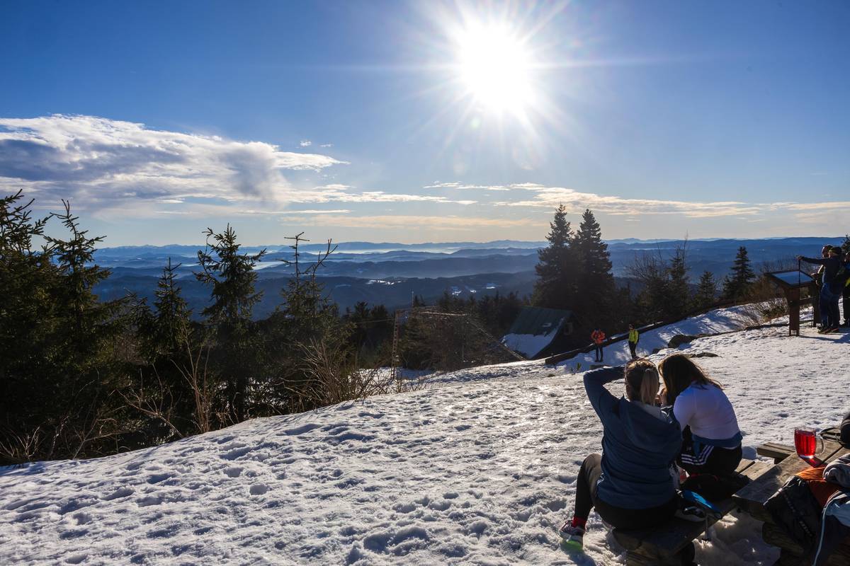 Lidé se na vrcholu Lysé hory oddávali relaxaci.