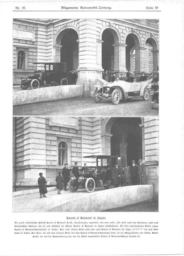 Mezi nejváženější japonské uživatele laurinek patřil starosta Tokia baron Ocaki. Ten měl černý typ PDVT. Fotky a text jsou z časopisu Allgemeine Automobile-Zeitung.
