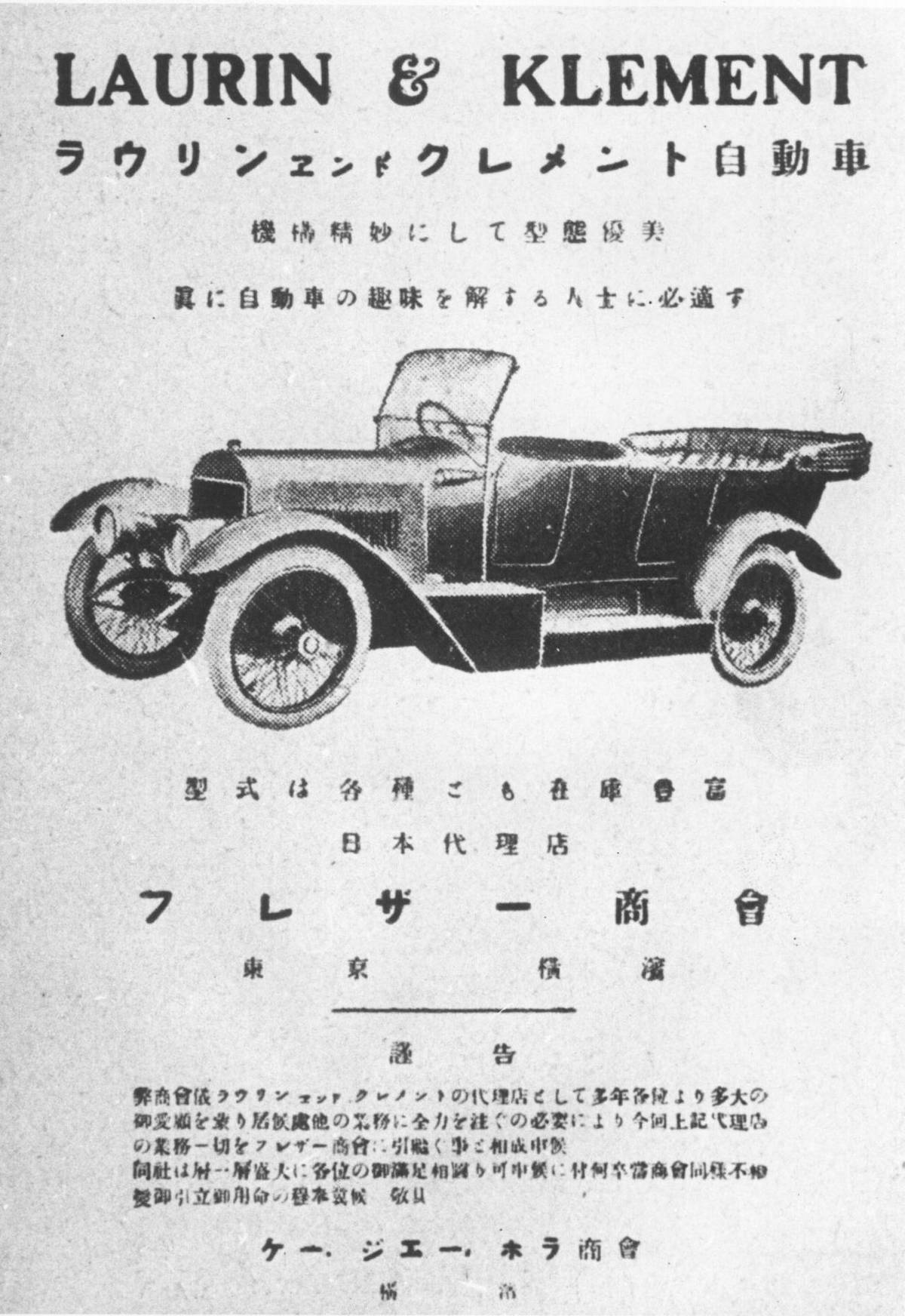 Dobový inzerát na model Laurin & Klement v časopise Jidosha.
