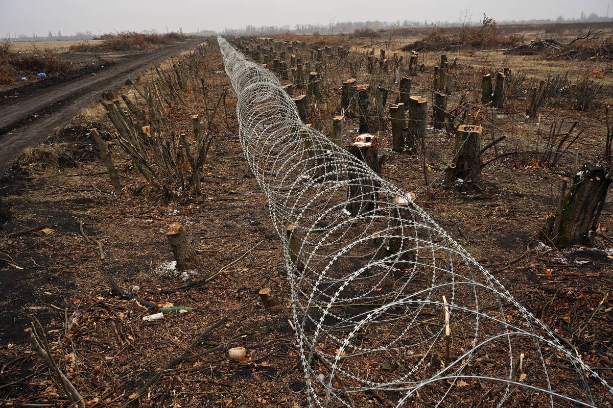 Ukrajinské obranné linie za městem Selydove