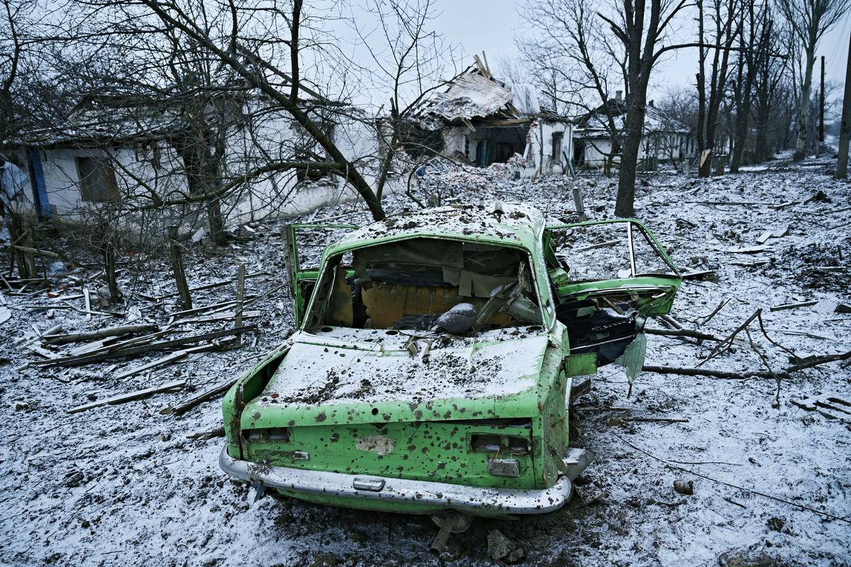 Vesnice Želanne po ruském ostřelování. Dnes je pod ruskou okupací.