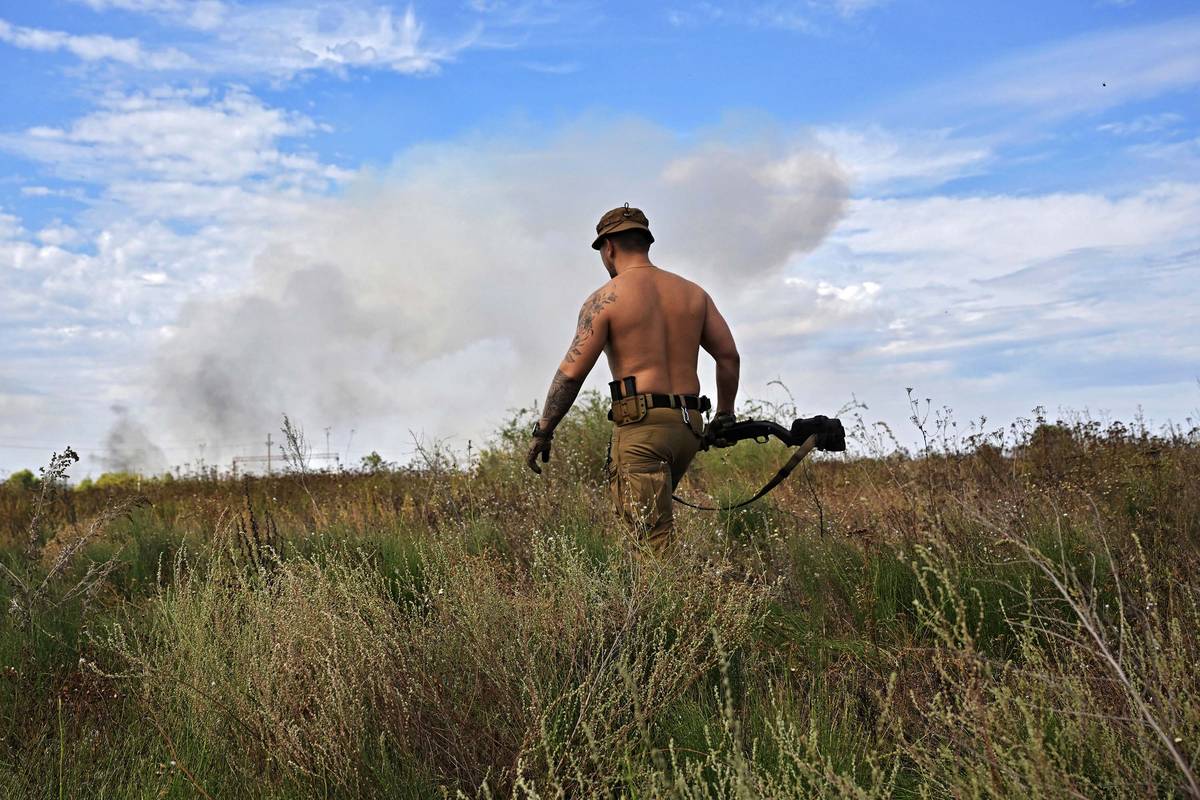 Ukrajinský voják s opakovací borokovnicí. Tyto zbraně se začaly používat jako ochrana před všudypřítomnými drony.