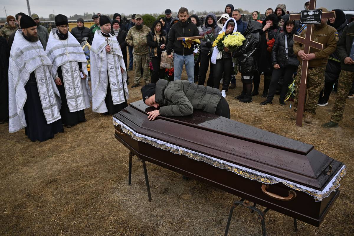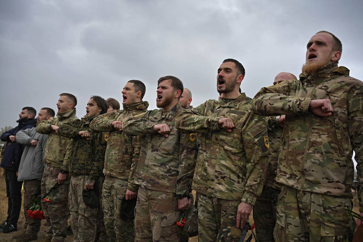 Pohřeb padlého bojovníka jednotky Azov na charkovském hřbitově