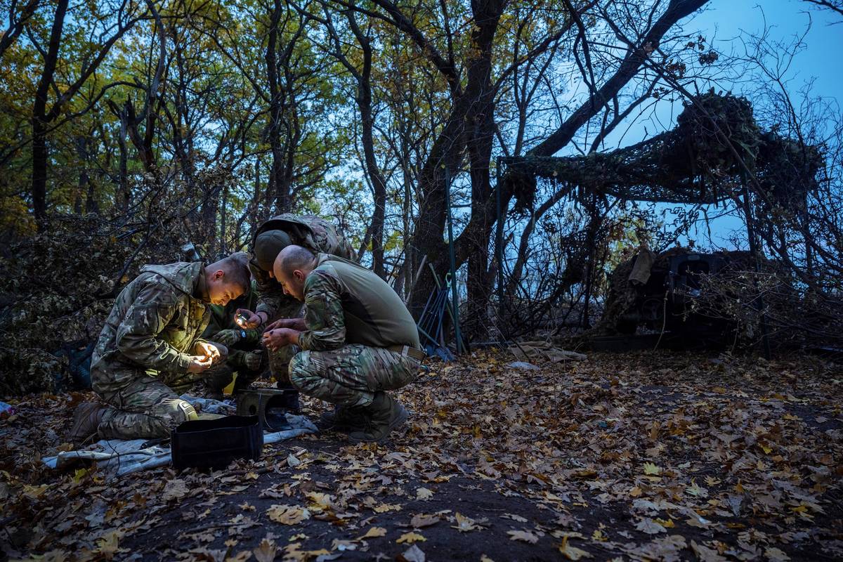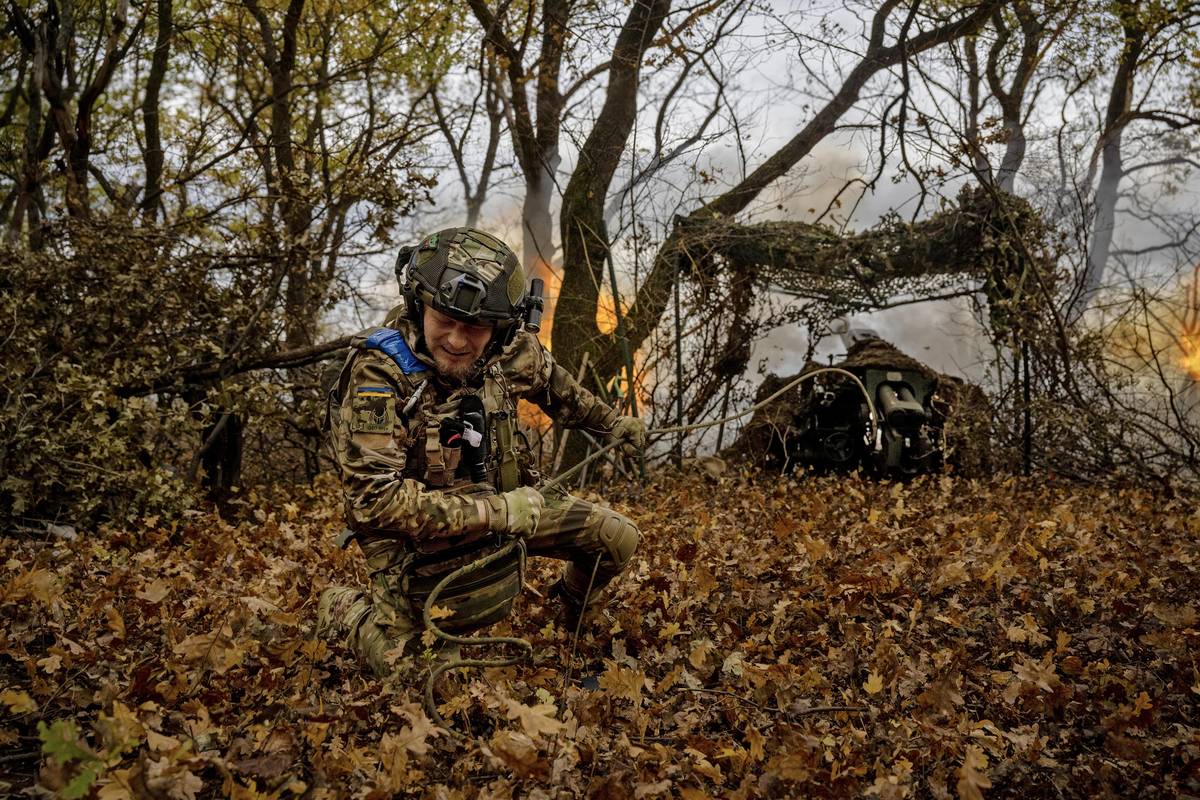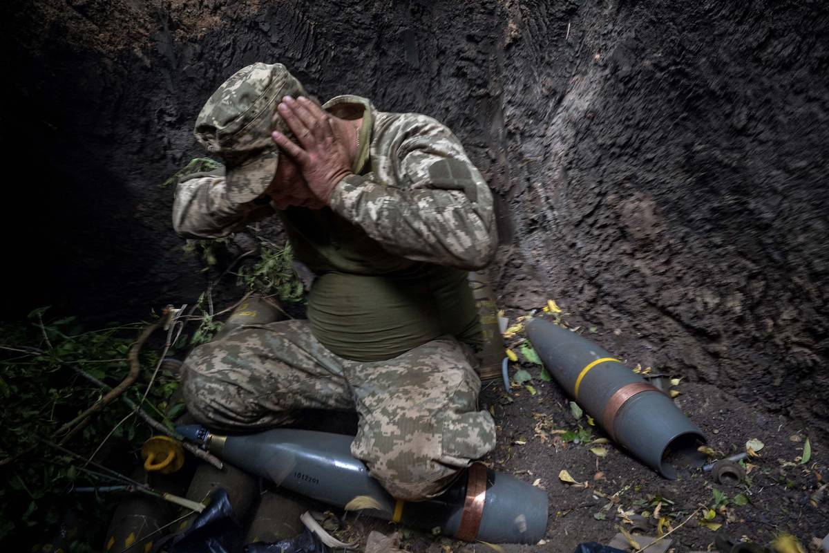 Ukrajinský dělostřelec v zákopu při odpálení granátu ráže 155mm. Na donbaskou frontu konečně dorazila dlouho čekaná dodávka z české muniční iniciativy.