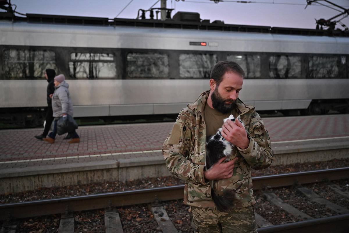 Ukrajinský voják Ihor Chmilenko odváží do rodného Lvova kocoura, kterého zachránil na Donbasu.