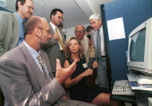 Zvláštní pracoviště Sekce ochrany utajovaných skutečností archivní a spisové služby MV, kde budou moci občané nahlédnout do tajných svazků StB. (ctrip) Ředitel Ústavu dokumentace a vyšetřování zločinů komunismu (ÚDV) Václav Benda a ministr vnitra Jan Ruml v Pardubicích, kde bylo 28.srpna otevřeno zvláštní pracoviště Sekce ochrany utajovaných skutečností archivní a spisové služby ministerstva vnitra. Občané zde budou moci nahlédnout do tajných svazků StB. (ČR-vnitro-StB-svazky)