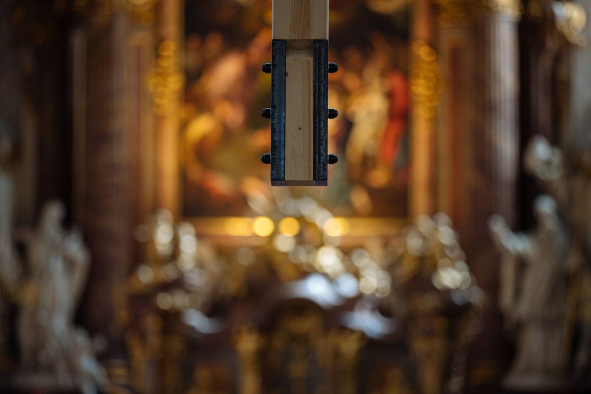 Kyvadlo od architekta Josefa Pleskota bude v pražském kostele Nejsvětějšího Salvátora viset do Velikonoc.