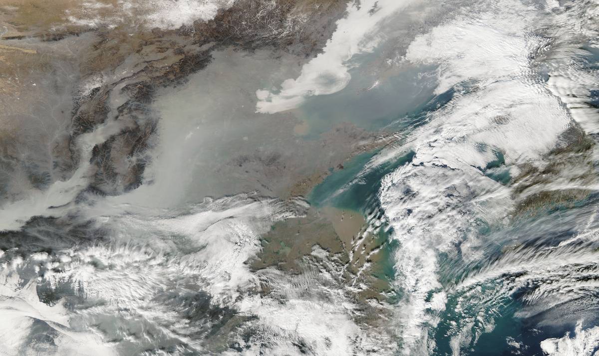 2016: From space, the smog appears gray.