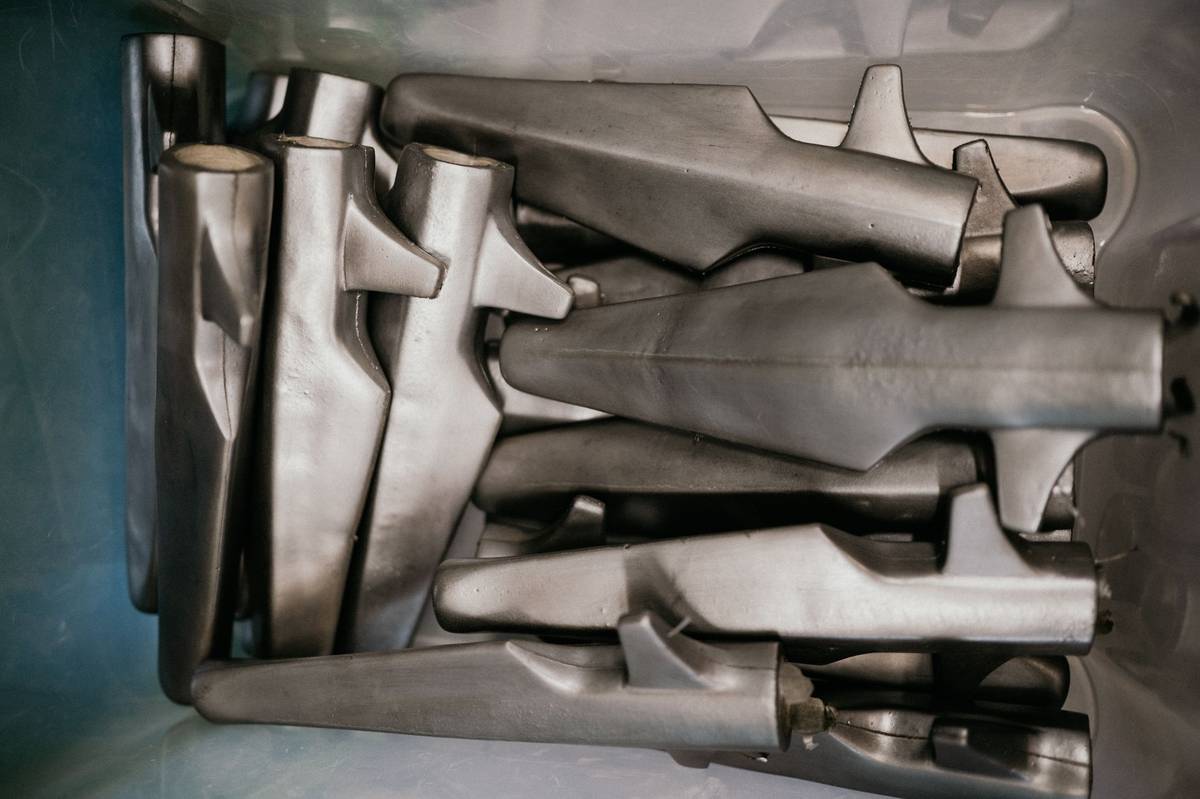Odlité čepele v procesu výroby.