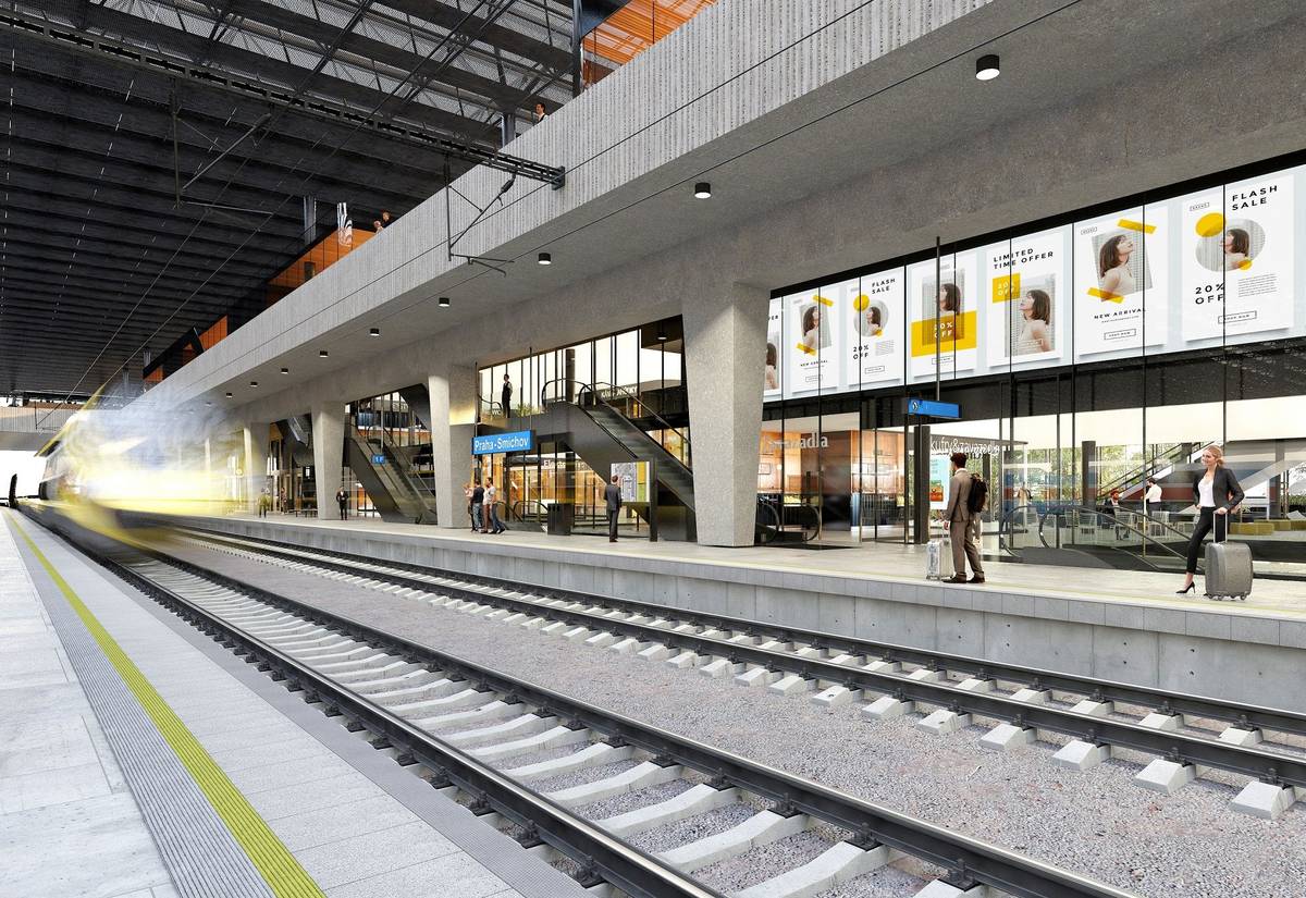 Budoucí terminál Smíchov bude součástí velké proměny celého území. S železnicí propojí nově budovanou čtvrť, tramvaje i metro, nad nástupišti vznikne platforma s autobusovým nádražím (na vizualizaci) pro dálkové i příměstské spoje. K dispozici bude parkoviště P+R i kapacitní stání pro kola. Zastřešení nástupišť bude zároveň sloužit jako spojnice Smíchova a Radlic.