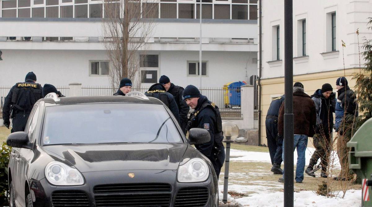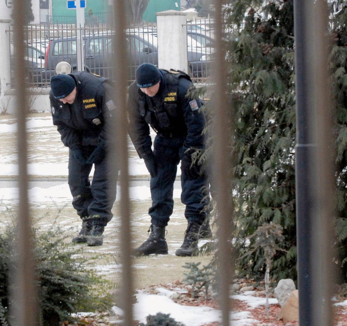 Policisté prohledávají 26. ledna 2006 okolí Durychovy ulice, kde byl večer předtím zastřelen Mrázek před sídlem své firmy.