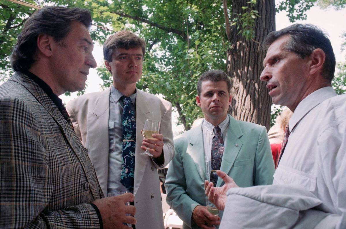 František Mrázek v červnu 1993 na tiskové konferenci k založení Nadace Karla Gotta Interpo.
