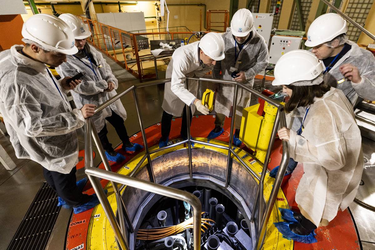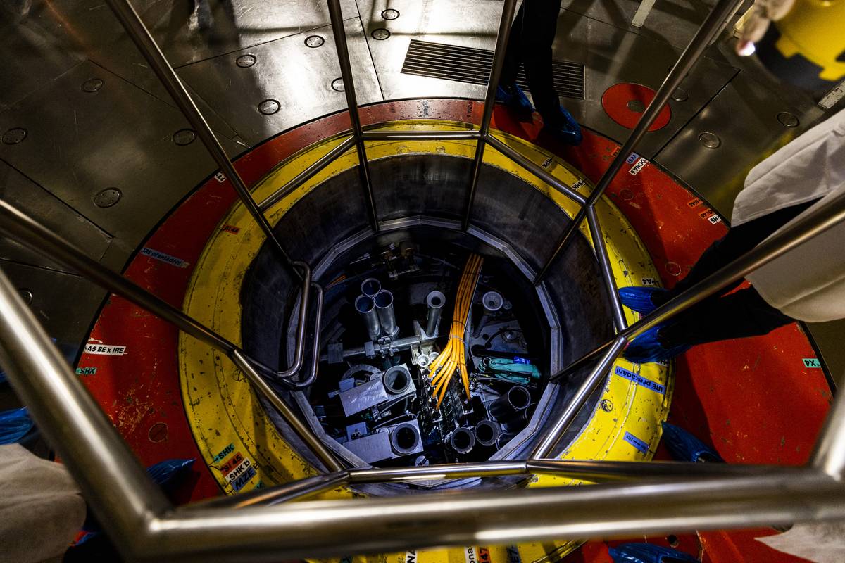 Protože je v době naší návštěvy reaktor odstavený, můžeme se vydat po přístupové lávce i k víku a nahlédnout dovnitř do aktivní zóny, v níž jsou umístěny palivové kazety.