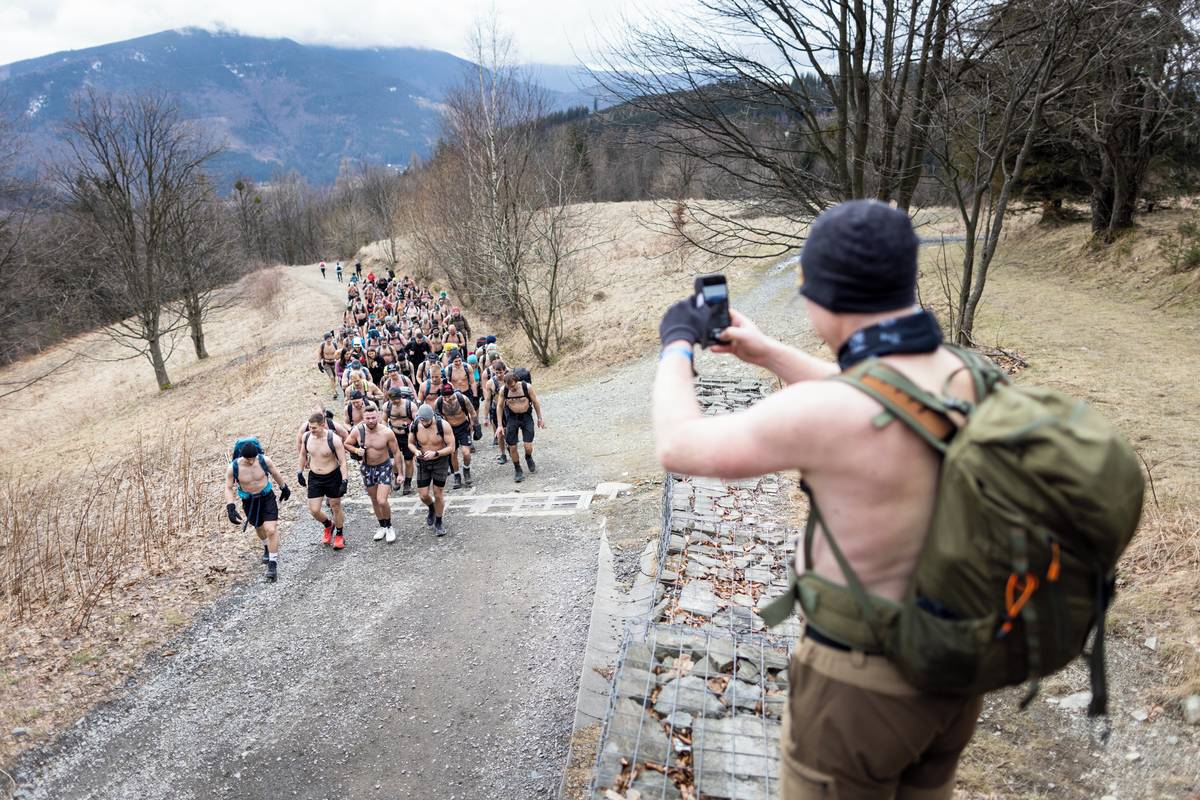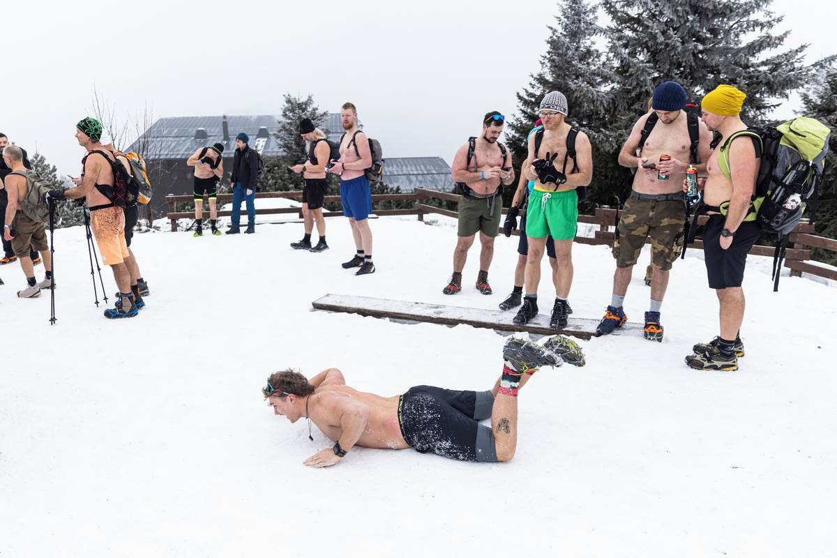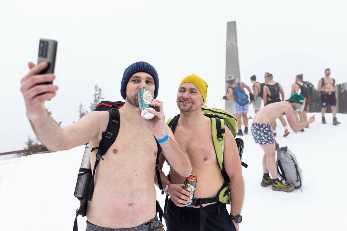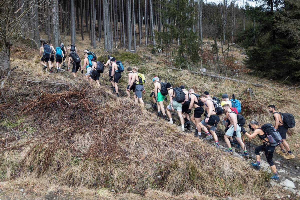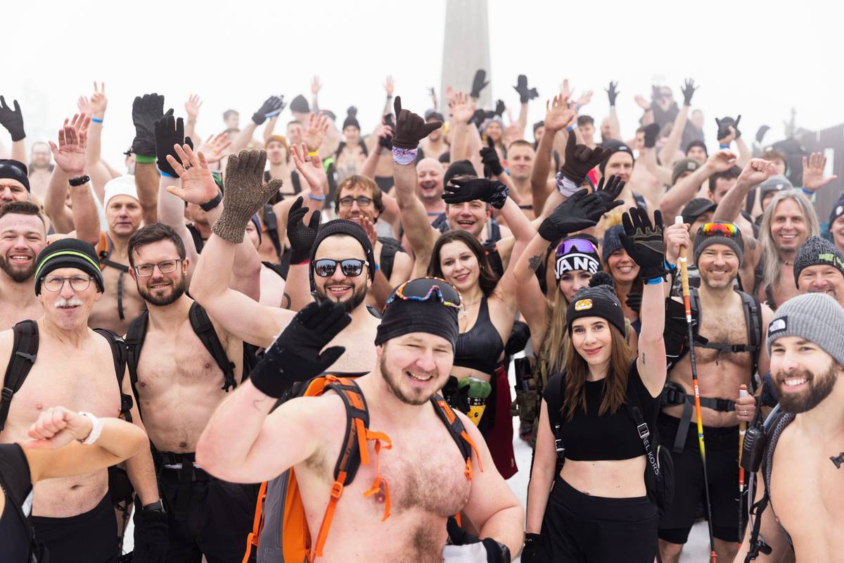 Dav otužilců pod vedením zkušených otužilců Dominika Lukse a Libora Mattuše vyrazil krátce po jedenácté hodině směr vrchol.
