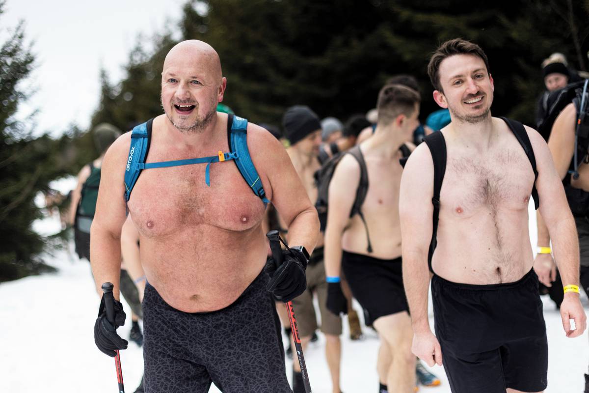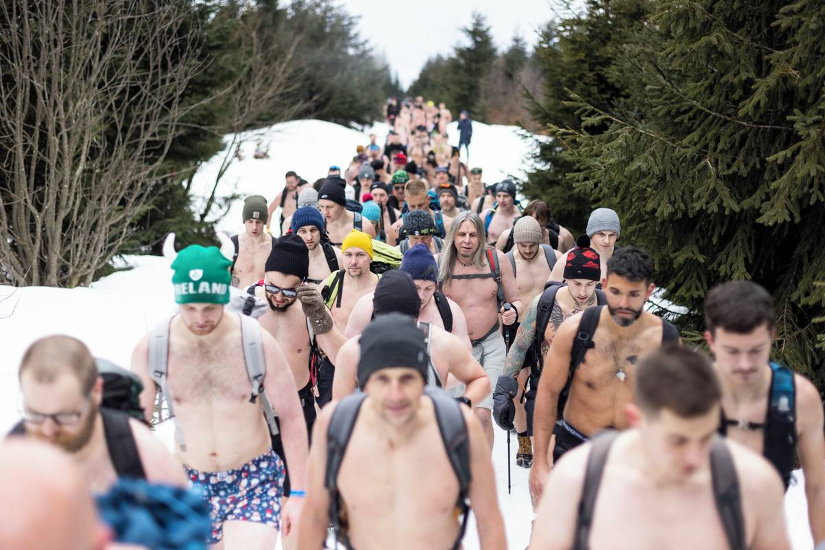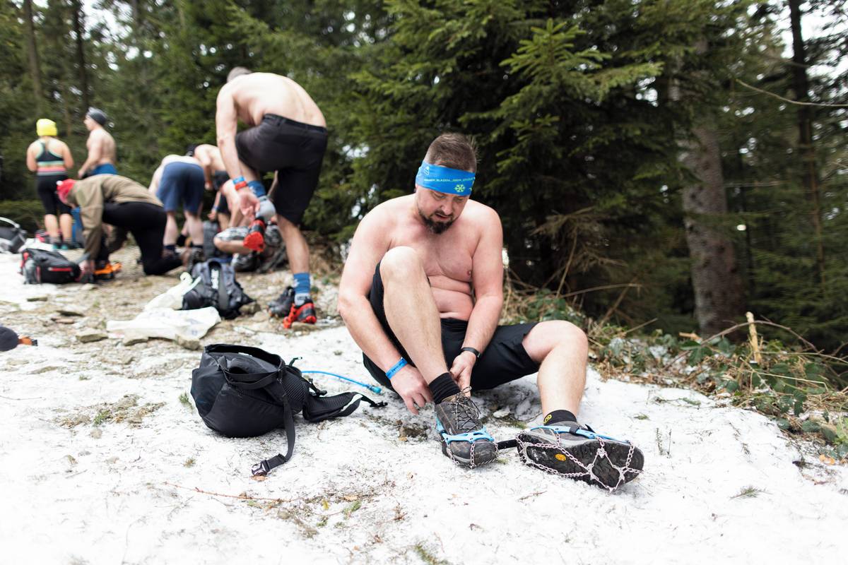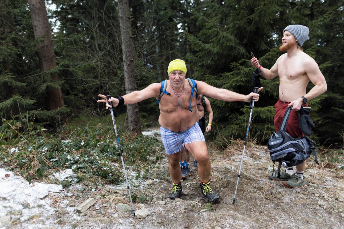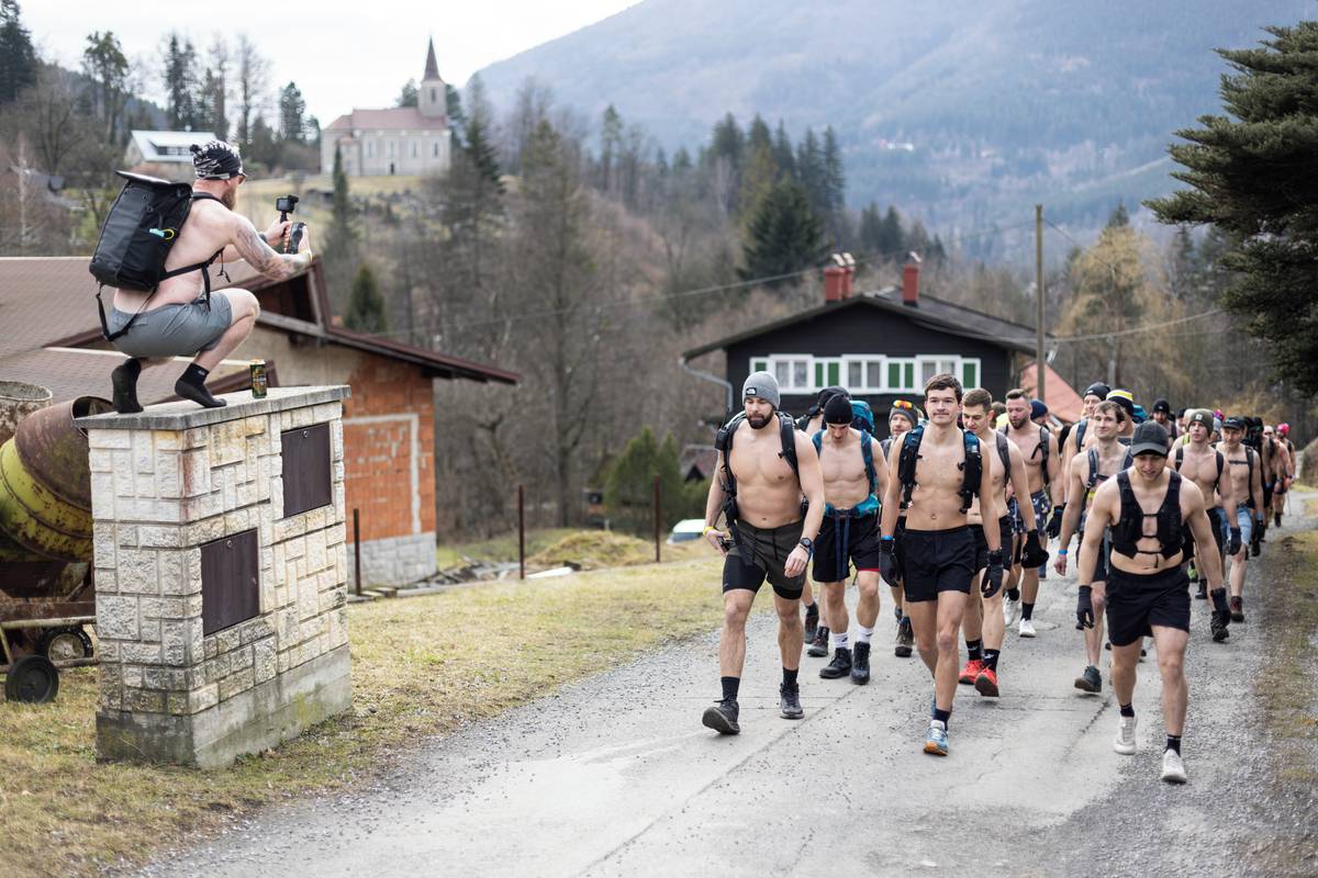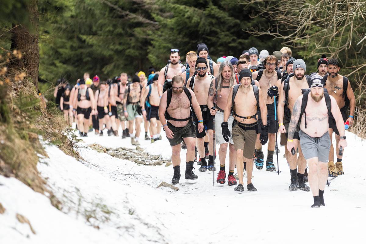 Dav otužilců pod vedením zkušených otužilců Dominika Lukse a Libora Mattuše vyrazil krátce po jedenácté hodině směr vrchol.