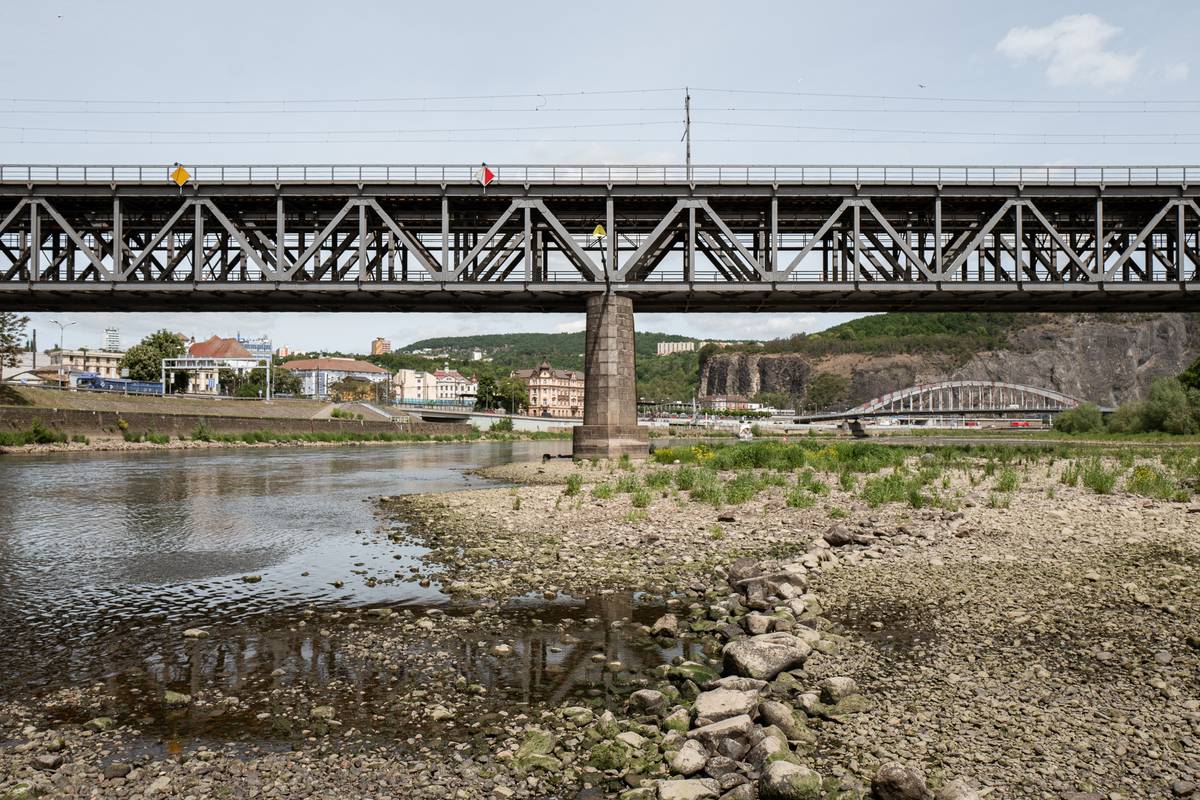 Z Labe pod železničním mostem v centru Ústí zbyly pouze laguny.