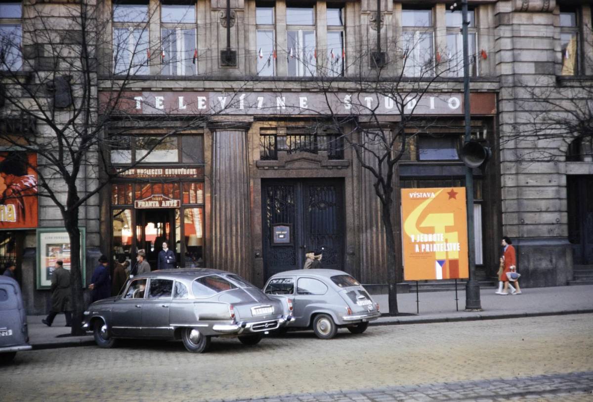 Na václavském Václaváku je moc člověků... a taky Tatra! Rok 1954.