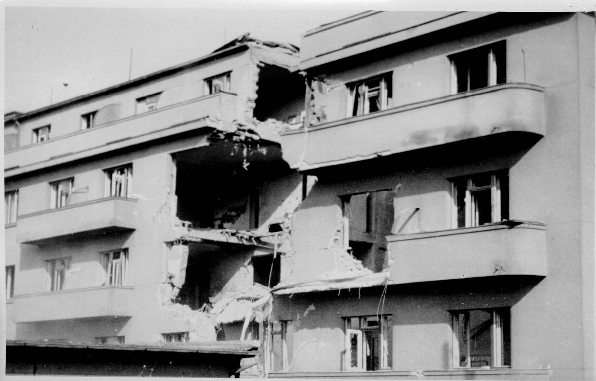 Následky bombardování 14. února 1945 na Pankráci