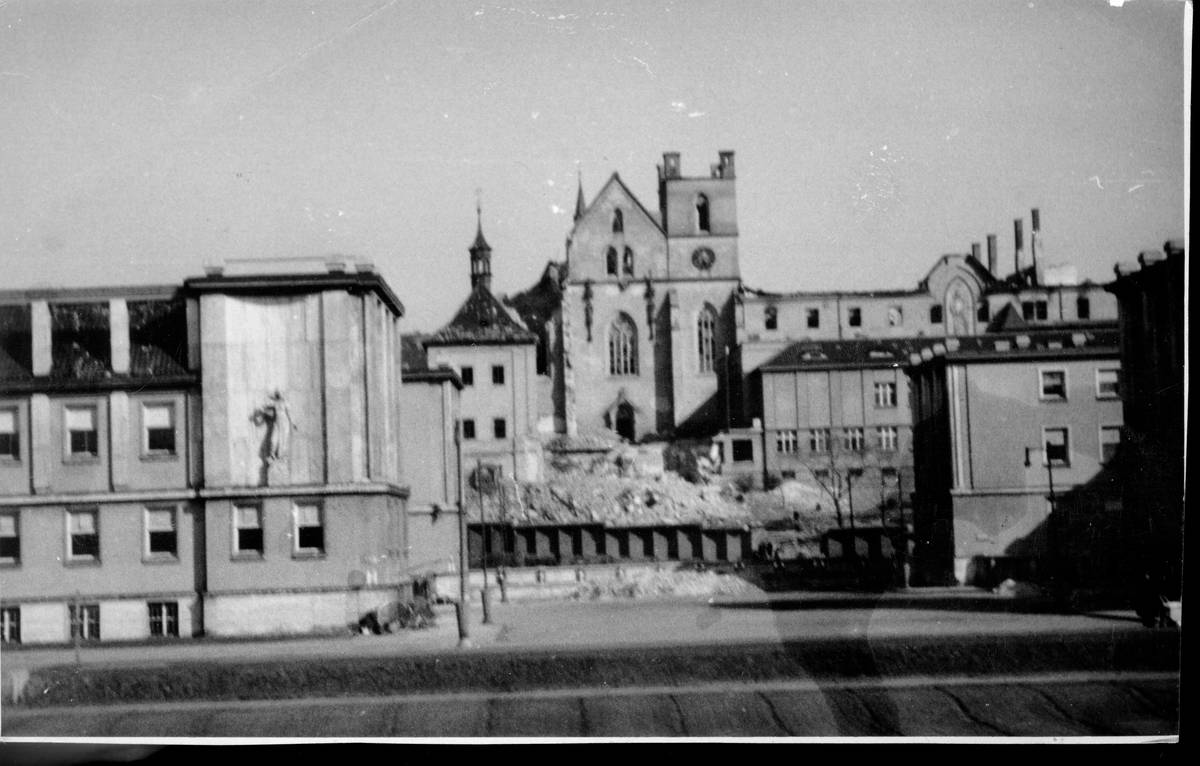 Emauzský klášter po bombardování v únoru 1945