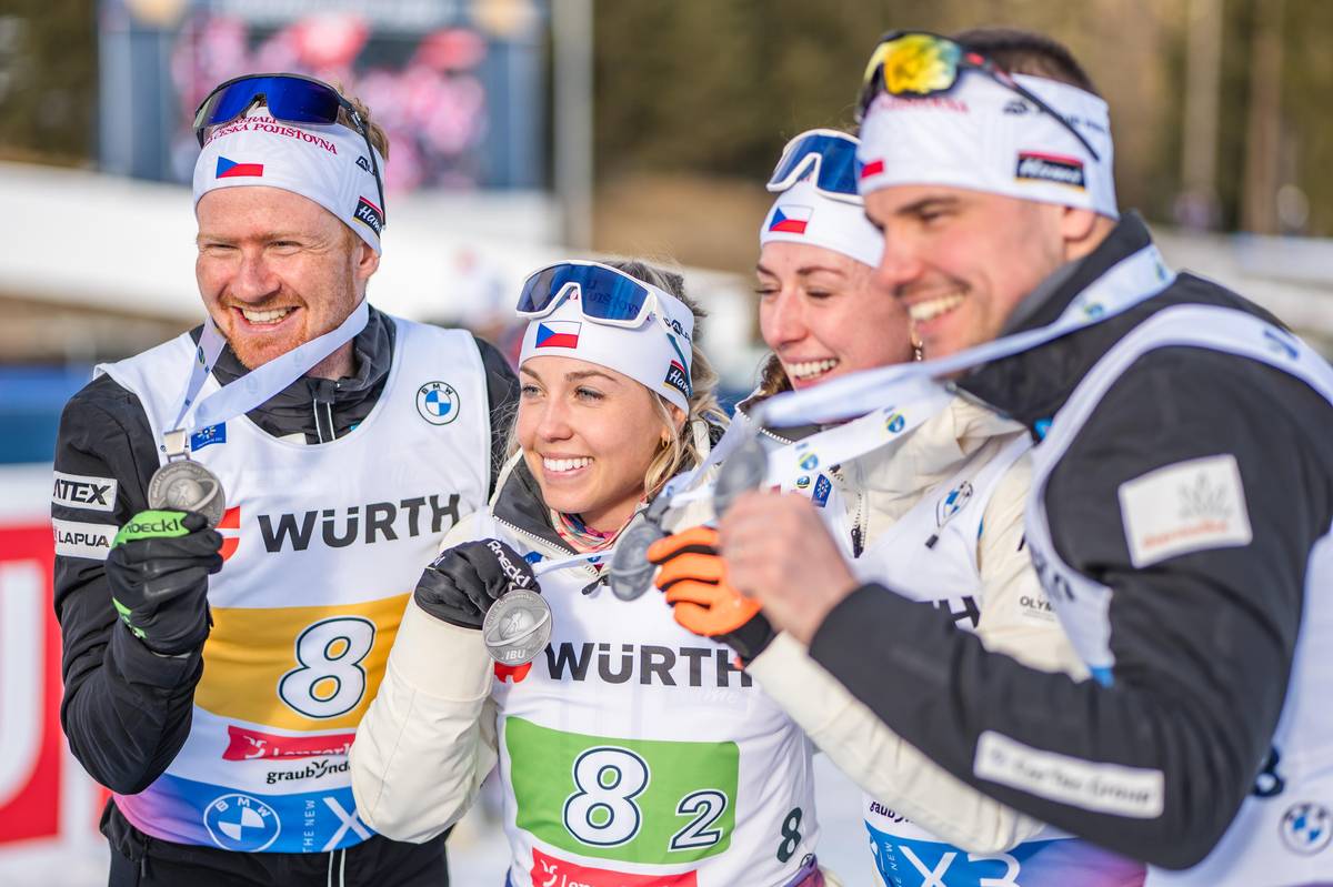 Český biatlonový tým vybojoval ve smíšené štafetě stříbrnou medaili.