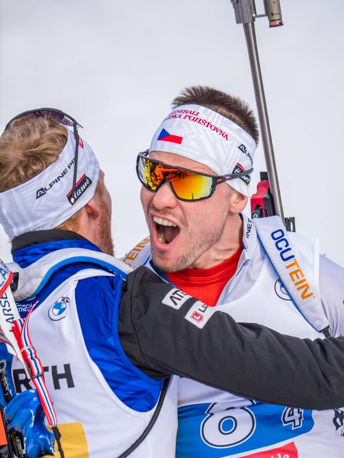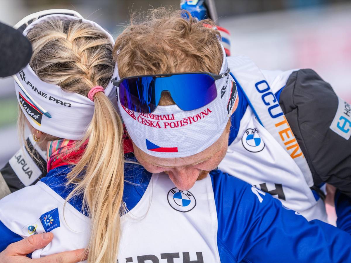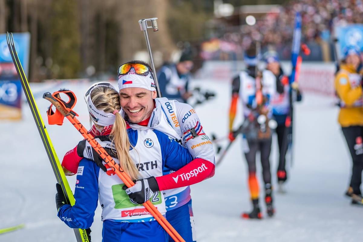 Kolem krku si padli biatlonisté Tereza Voborníková a Vítězslav Hornig.