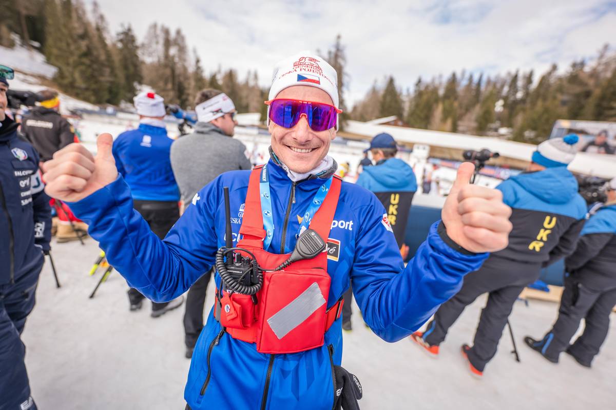 Šťastný trenér Ondřej Moravec měl po smíšené štafetě důvod k radosti.