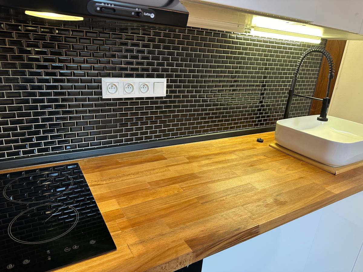 Kuchyňský kout je vkusně a moderně zařízený