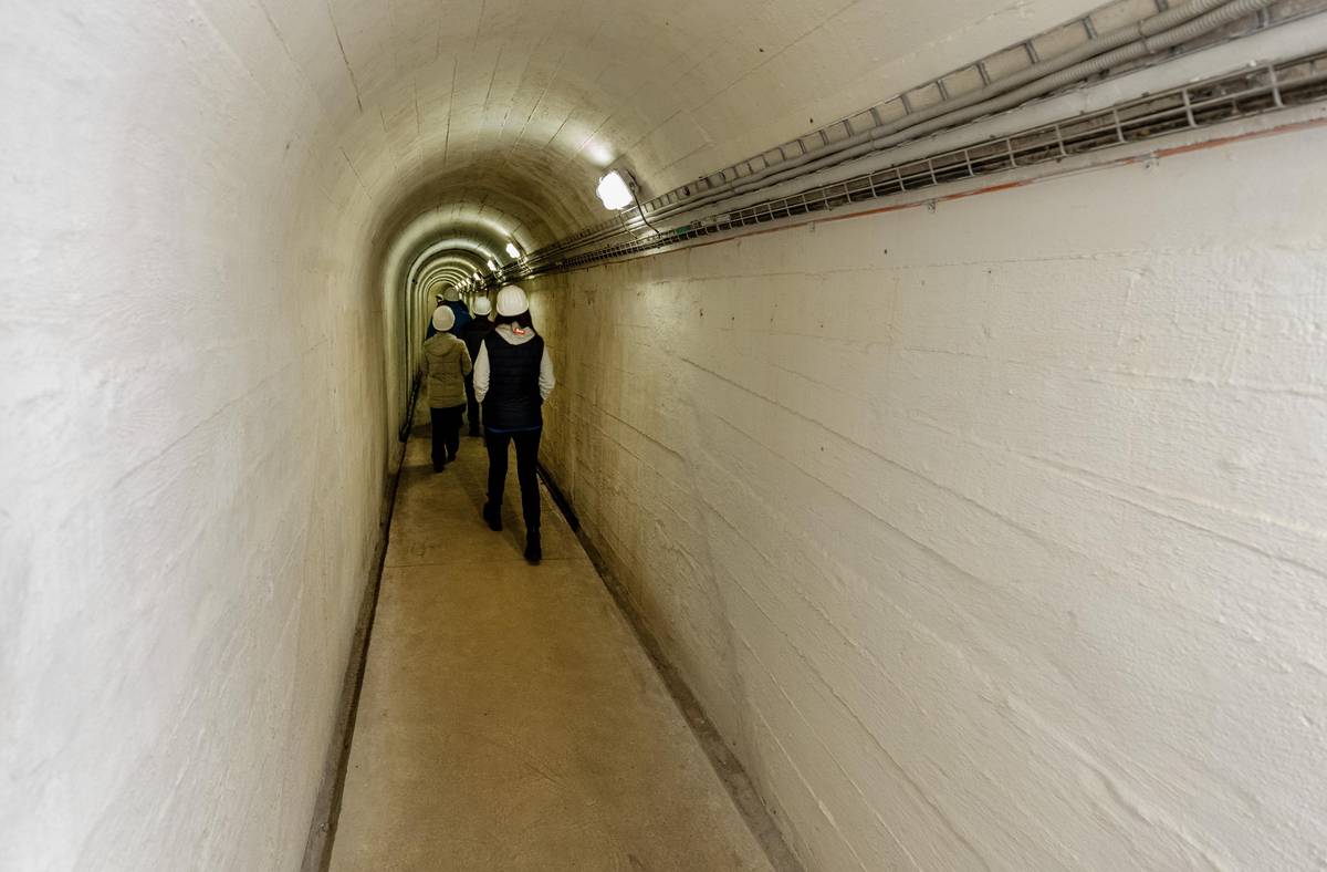 Chodba vylámaná do skály, vedoucí k výtokovému kanálu