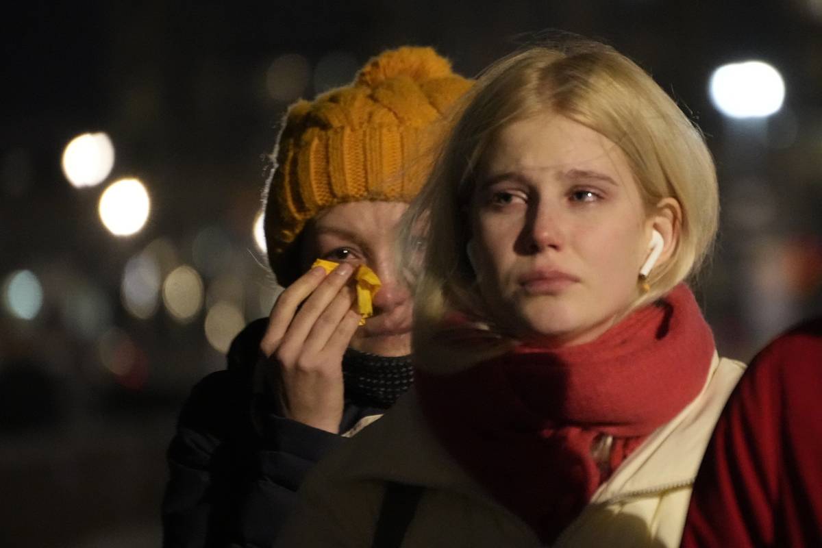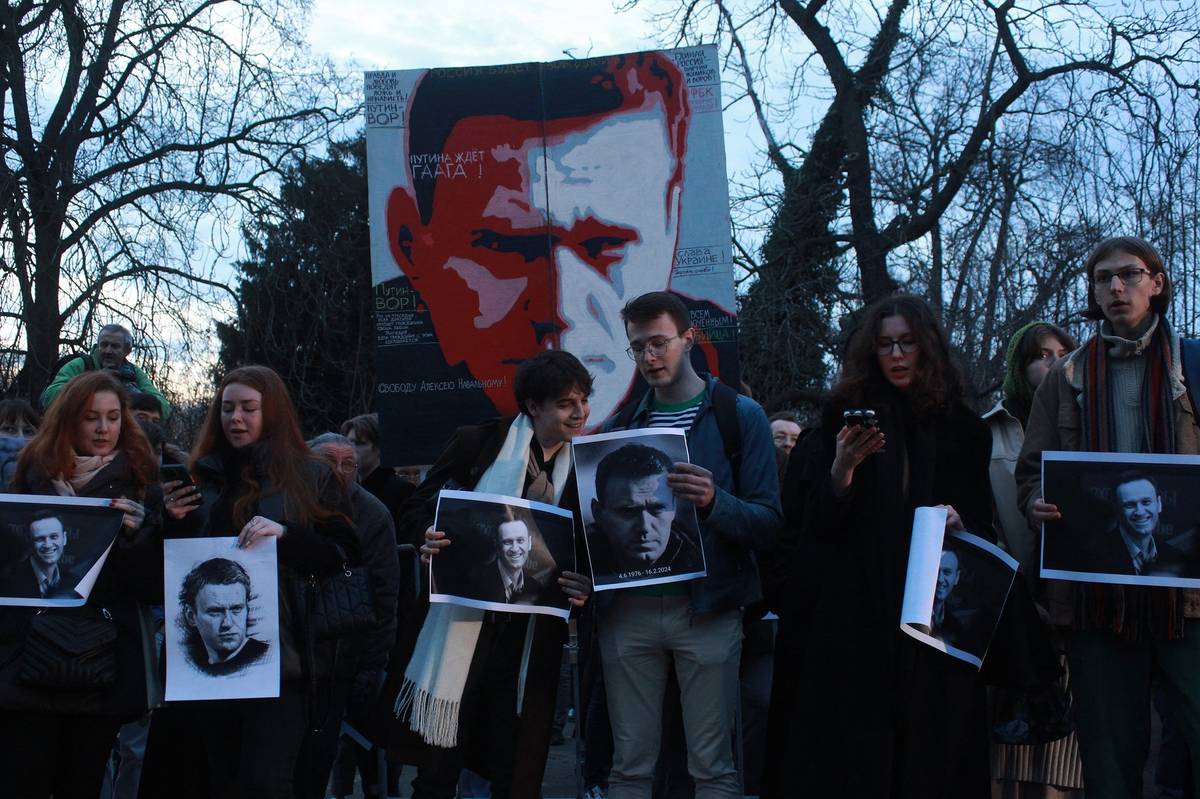 V Murmansku podle serveru Ostorožno, novosti zadrželi dívku, která vyšla protestovat s transparentem, na kterém stálo: „Alexej Navalnyj zabit. Jeho krev je na tvých rukách, Vovo.“ Vova je zdrobnělina křestního jména ruského prezidenta Vladimira Putina. Další mladou ženu zadrželi v Moskvě. Snímek z Petrohradu.