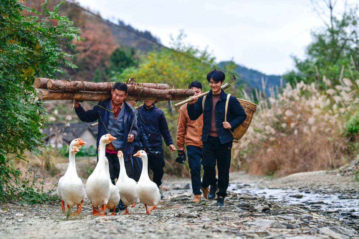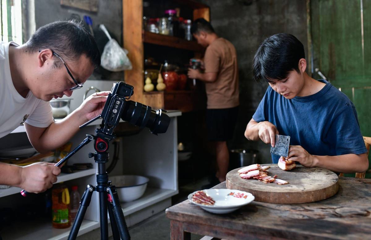 Obyvatelé města Sia-pchu v provincii Fu-ťien získali slávu na sociálních sítích tím, že inscenují malebné venkovské scenérie a za jejich vyfotografování vybírají od turistů peníze. Uspokojují tak nostalgii návštěvníků po pastorální idyle, která možná nikdy skutečně neexistovala. (Na snímku z 11. prosince 2023 je vidět skupina mladých, kteří už několik let natáčí krátká videa z venkova v jihozápadní čínské provincii Kuej-čou. Mnohá z jejich videí se stala virálními a vzbudila stesk po domově u nespočtu lidí.)