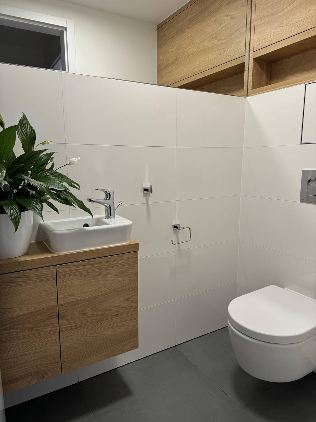 Kvůli výměně dveří museli v koupelně vybourat část obkladů a znovu ji obložit