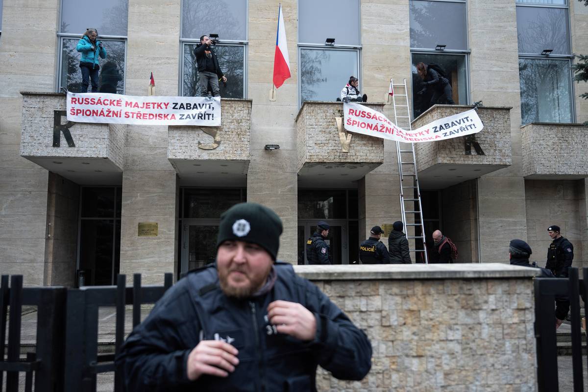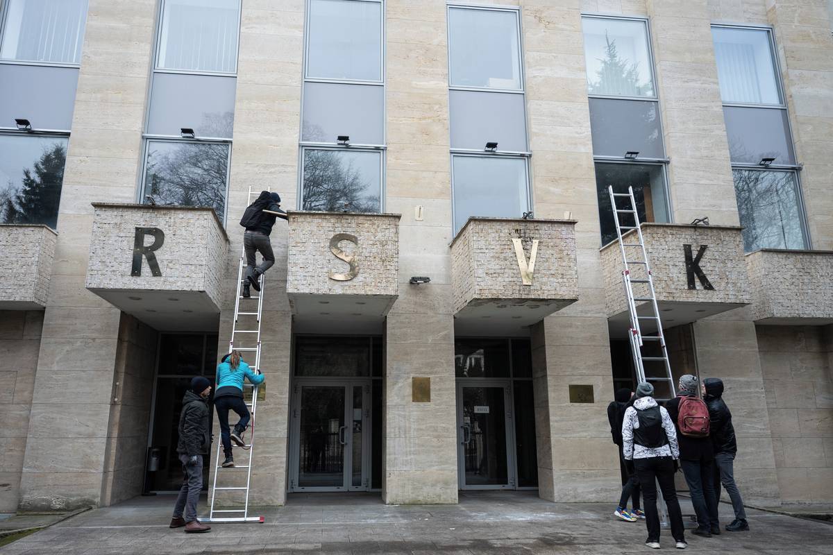 …protestující dobrovolně opouští fasádu i pozemek budovy.