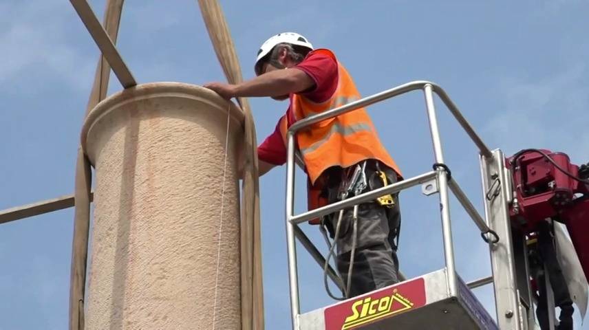Na Staroměstském náměstí v Praze sochař Petr Váňa a jeho tým od rána dokončují práce na imitaci mariánského sloupu.