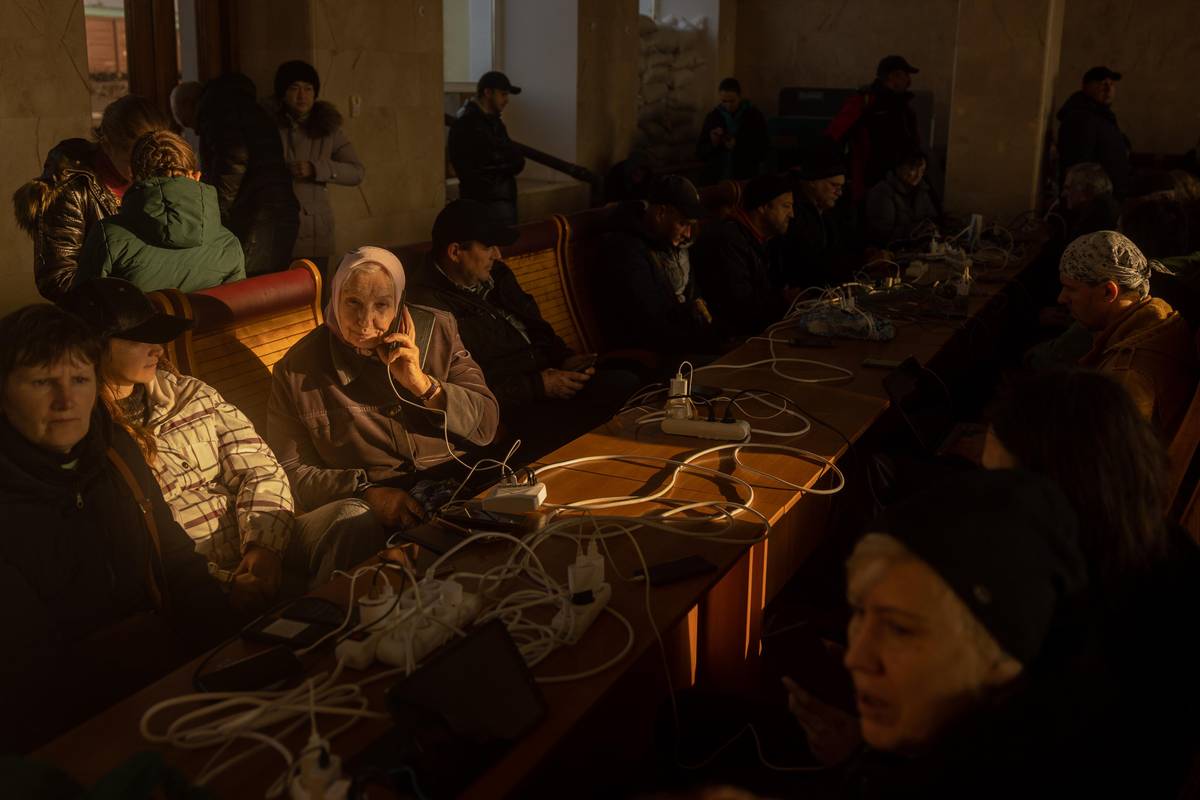 Boje kolem Bachmutu, kde před válkou žilo přes 70 tisíc lidí, zintenzivněly poté, co ukrajinská armáda v listopadu 2022 znovu získala kontrolu nad městem Cherson a jeho okolím. Bachmut Rusové nakonec za cenu velkých lidských ztrát a totálního zničení města dobyli v roce 2023. (Na snímku si civilisté nabíjí mobily, 19. listopadu 2022 v Chersonu.)