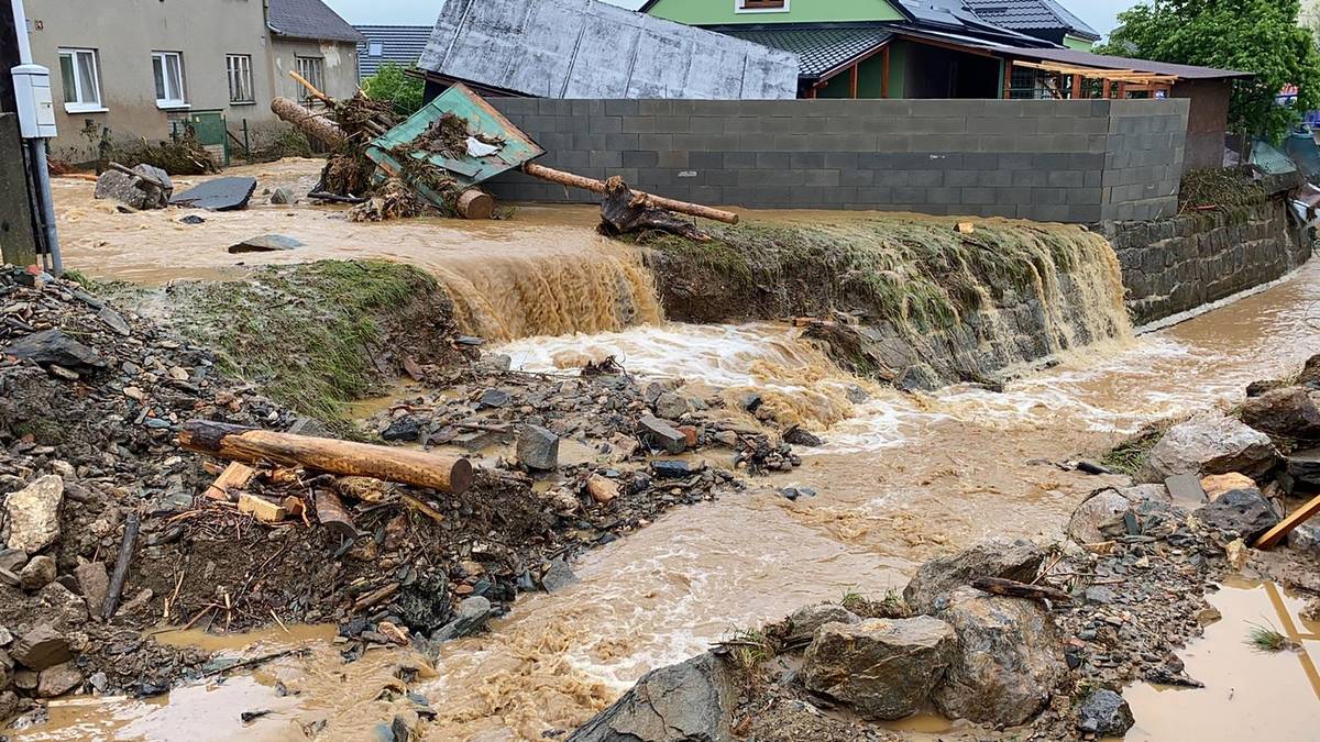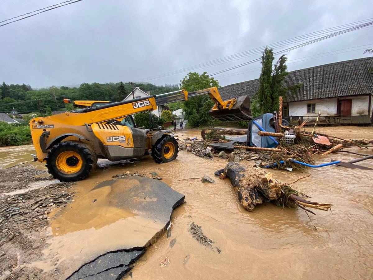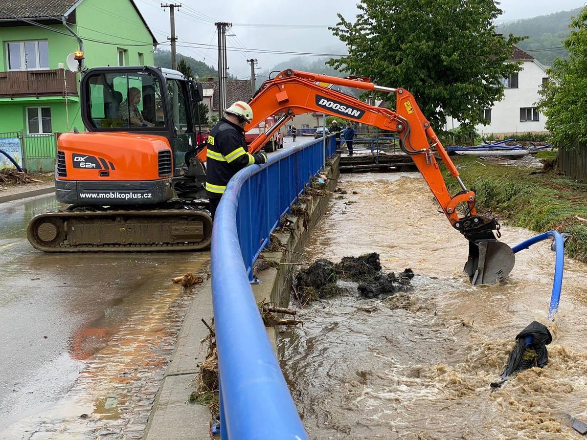 Hasiči zasahují hlavně v Šumvaldu. Na místě je těžká technika s vyprošťovacím automobilem, hydraulickým nakládacím jeřábem, rypadlem i nakladačem.