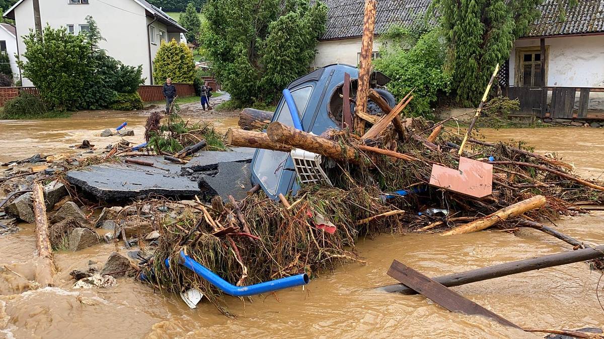 Téměř 30 jednotek profesionálních a dobrovolných hasičů nyní vyprošťuje automobily z koryt řek.